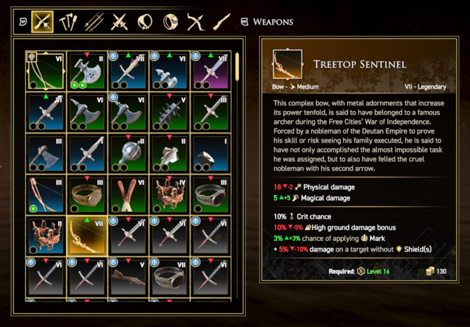 Bei den Items haben sich die Entwickler aber leider keinen Blumentopf verdient. Da findet man ein legendäres Item mehrere Stunden nach dem bereits ausgerüsteten „normalen" Item, und das hat nicht nur keine legendäre Eigenschaft, sondern es ist auch noch schlechter! Warum? In dem Screenshot ist ein legendäres Item mit Stufe 7 zu sehen, das gegen meinen Bogen mit Stufe 6 gleich bis schlechter abfällt. Das ist leider keine Seltenheit. Genaugenommen hatte ich nicht ein einziges Mal den "Wow"-Effekt, den ein solches Item mitbringen sollte.